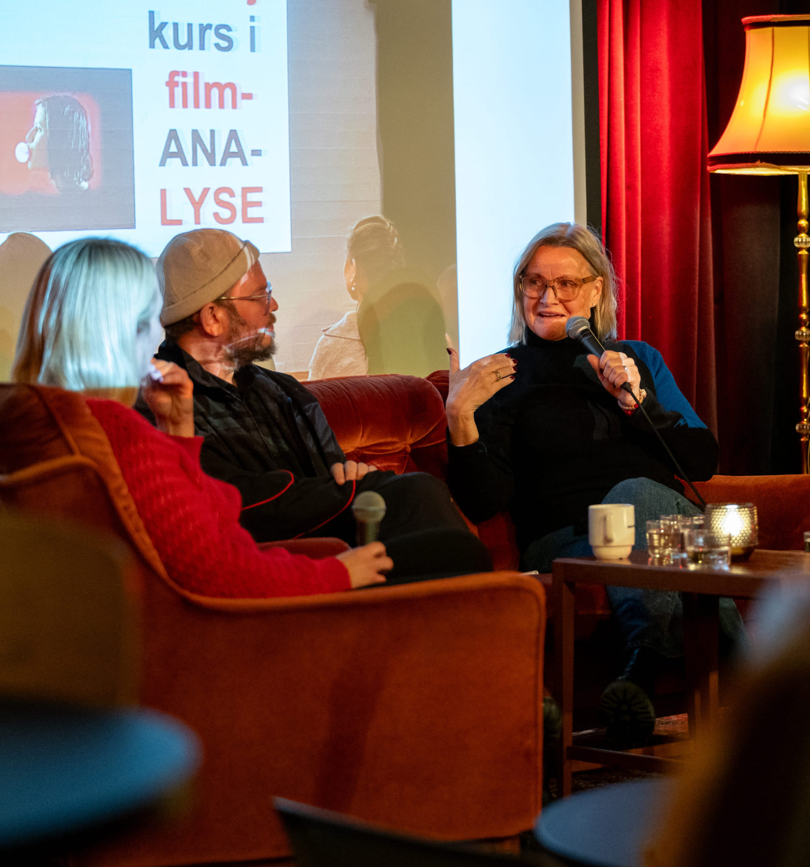 Etter presentasjonen av veilederen møtte Nina Mathisen filmformidleren Lars Ole Kristiansen og koordinator i DKS Vestfold, Toril Sjømæling , til en samtale om deres erfaringer med filmanalyse og -samtale for elever.