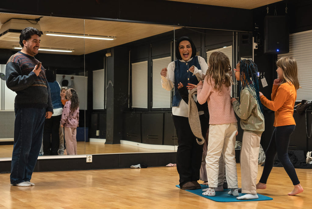 Det er høyt tempo og lydnivå i en sal på aktivitetshuset K1 på Tøyen denne onsdags ettermiddagen. De neste timene skal Sedra og instruktør Julio lede kurset «teaterlek» for til sammen rundt 40 barn, i regi av KIGO (Kultur i Gamle Oslo).