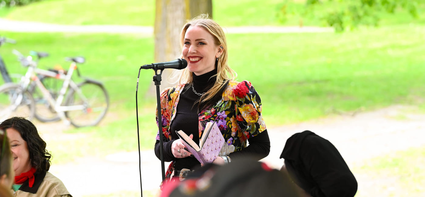 Bilde: Høytlesing med Ida Therese Klungland under Komma 2025. Foto: Trine Ruud Grønningen/Kulturtanken